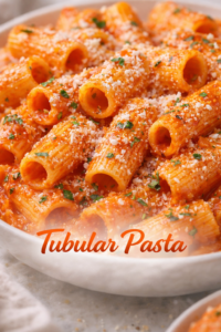 Tubular pasta is a type of pasta shaped like tubes. Examples include penne, rigatoni, and ziti. These shapes are great for holding sauces and ingredients.