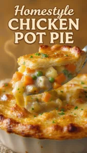 The Homestyle Chicken Pot Pie is a quintessential comfort food that blends tradition with convenience. Its rich, savory filling and golden crust make it a favorite for all ages. Whether you’re making it for a Sunday dinner or as a cozy weeknight meal, this recipe provides not only flavor but also a sense of home. Embrace the joy of creating a dish that warms both the heart and the home, and watch as your family gathers around to enjoy every bite.